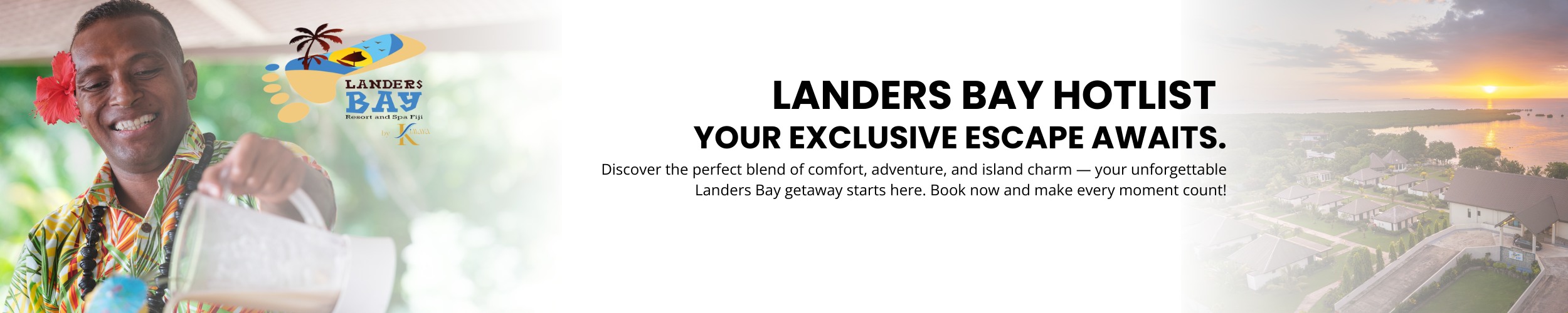 This special “Hotlist” rate is for accommodation in our tranquil Garden View Bure. All guests at Landers Bay Resort enjoy access to our beautiful private beach, outdoor swimming pool, and are welcome to explore and book additional activities and dining experiences.